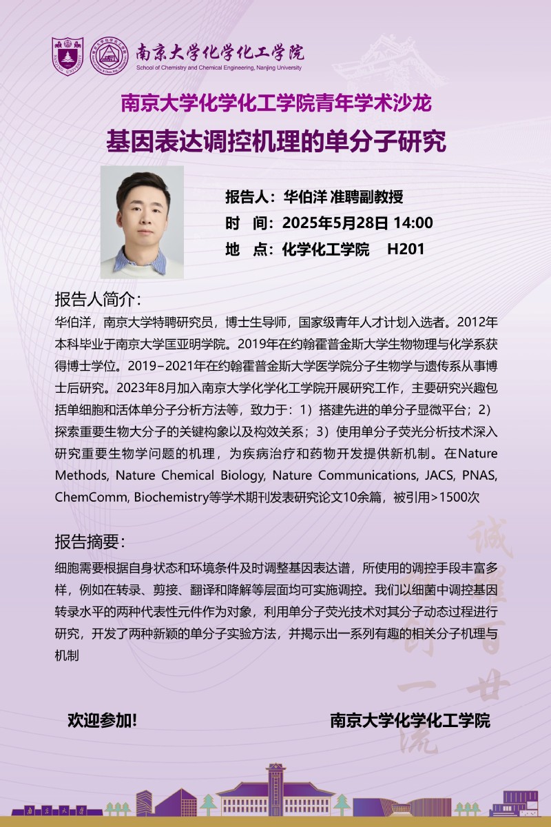5月28日青年学术沙龙-华伯洋准聘副教授:基因表达调控机理的单分子研究