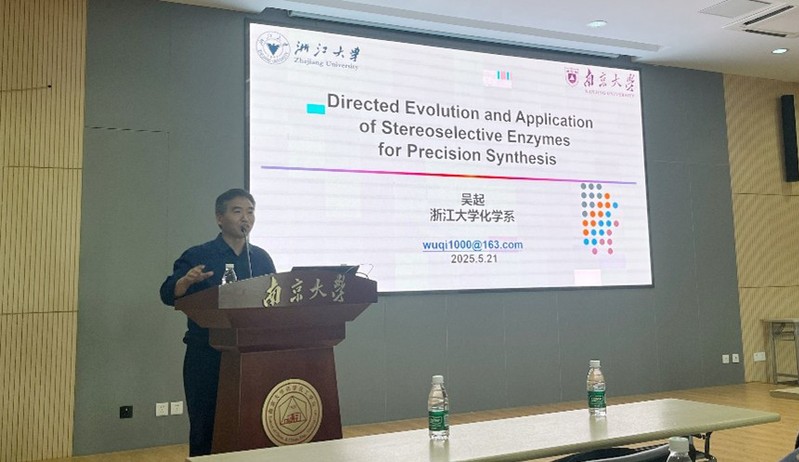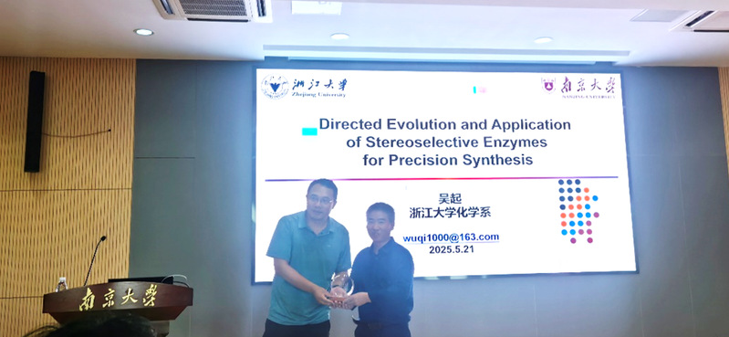 2025年5月21日下午,浙江大学吴起教授应邀作为太阳集团tcy8722“名师讲坛”嘉宾,为公司师生作了题为“酶的定向进化与手性催化”的精彩报告。报告由太阳集团tcy8722副经理史壮志教授主持。史壮志教授介绍了吴起教授的简历和成就,并向吴起教授颁发了“名师讲坛”纪念铭牌。公司多位教师、员工参加了此次学术报告会。