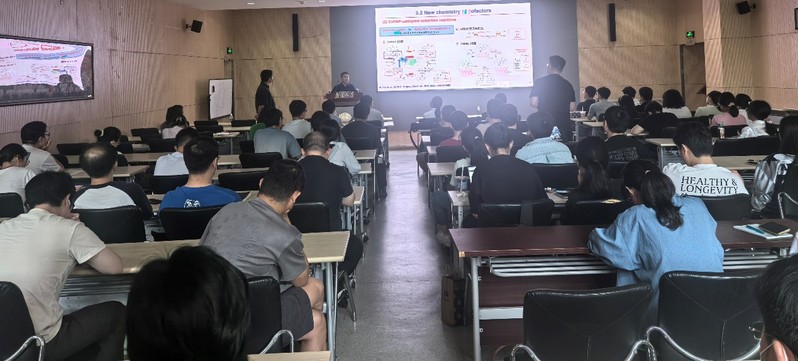 本次报告吸引了化院和生科院逾百名师生的参与。在问答环节,吴起教授就FRISM技术的普适性拓展、AI辅助突变预测等前沿问题与听众深度互动,现场学术氛围热烈。报告不仅展现了生物催化与绿色化学交叉创新的最新进展,更通过案例剖析为青年学者提供了酶工程研究的范式参考。