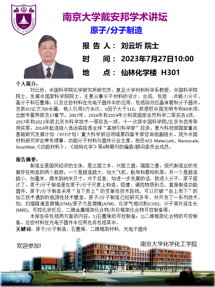 7月27日戴安邦学术讲坛-刘云圻院士:原子/分子制造