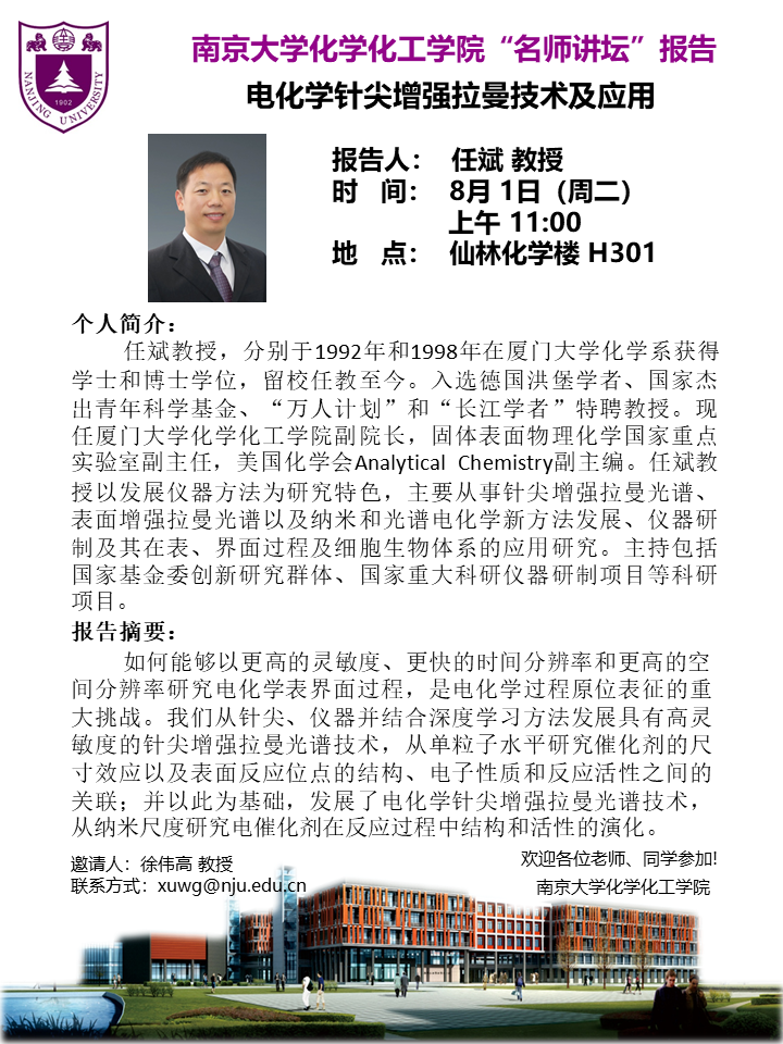 8月1日名师讲坛-任斌教授:电化学针尖增强拉曼技术及应用