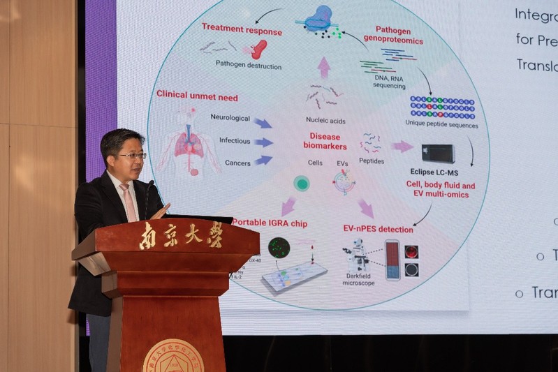 胡老师从目前临床诊断与相关技术转化所遇到的瓶颈讲起,重点介绍了课题组所开发的尖端智能分子诊断技术,包括纳米等离子体增强生物传感和人工智能驱动的细胞外囊泡分析,这些技术克服了传统方法的局限性,特别是在儿科结核病和耐多药感染等具有挑战性的病例中。进一步地,胡老师介绍了其团队所开发的便携式“Lab-in-tube”检测平台,将工程纳米材料与机器学习结合起来,从最小的样本量中解码疾病信号。这些创新提高了诊断的准确性、可及性和可扩展性。通过将多组学分析与智能生物传感相结合,为下一代精准医学铺平了道路。