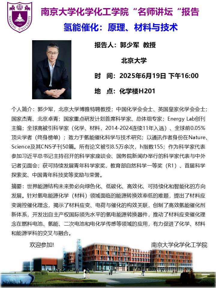 6月19日名师讲坛-郭少军教授:氢能催化:原理、材料与技术