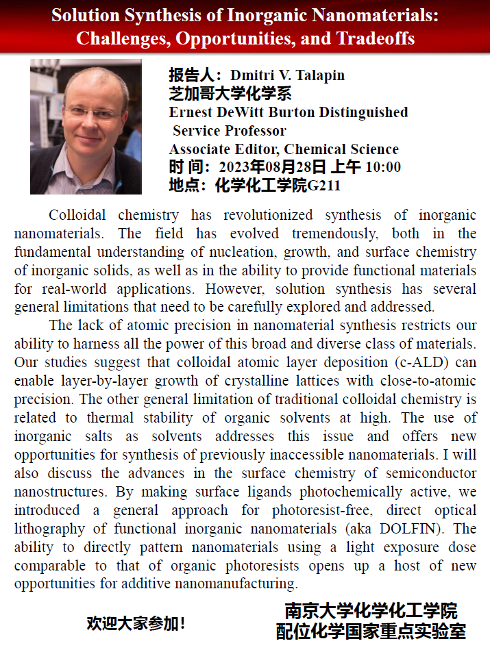 8月28日名师讲坛-Dmitri V. Talapin:Solution Synthesis of Inorganic Nanomaterials: Challenges, Opportunities, and Tradeoffs