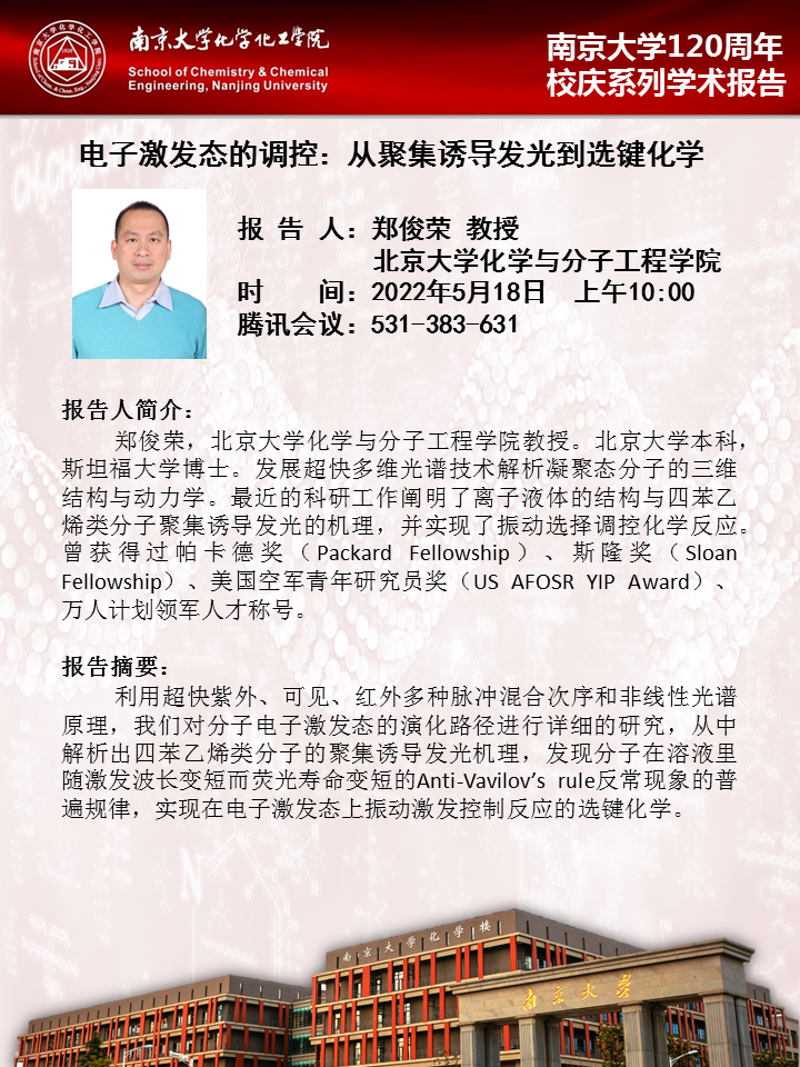 5月18日:太阳成集团120周年校庆系列学术报告-郑俊荣教授