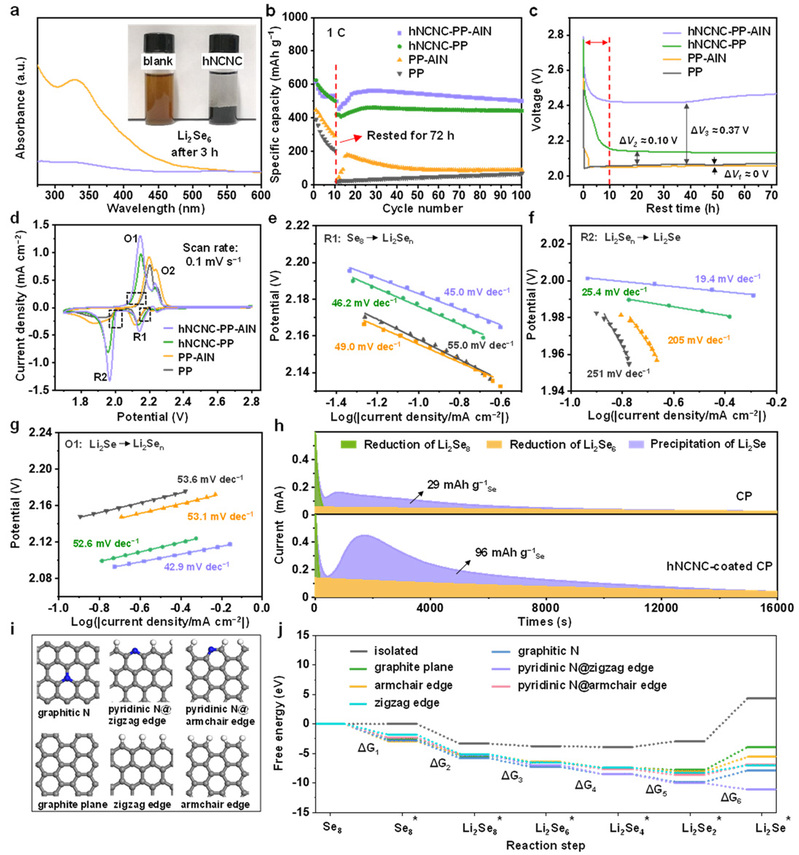 图3 正极侧hNCNC对多硒化锂的化学吸附和电催化作用。