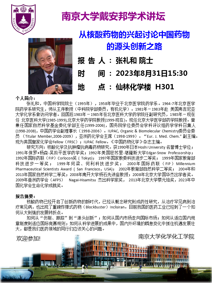 8月31日戴安邦学术讲坛-张礼和院士:从核酸药物的兴起讨论中国药物的源头创新之路