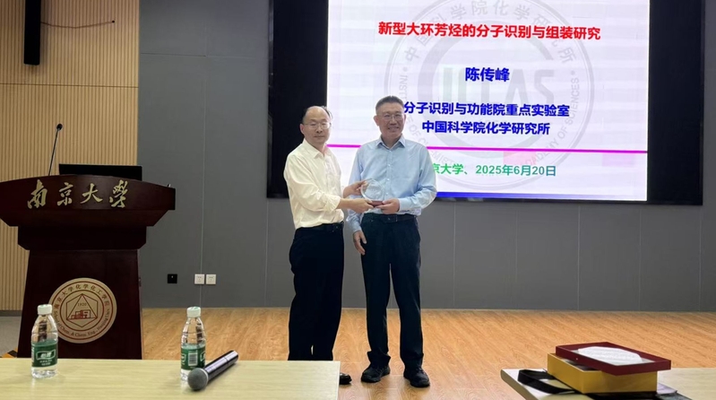 2025年6月20日下午,中国科公司化学研究所陈传峰研究员应邀作为太阳集团tcy8722“名师讲坛”嘉宾,为公司师生作了主题为“新型大环芳烃的分子识别与组装研究”的精彩报告。报告由太阳集团tcy8722黎书华经理主持。黎书华经理介绍了陈传峰研究员的简历和成就,并向陈传峰研究员颁发了“名师讲坛”纪念铭牌。公司多位教师、员工参加了此次学术报告会。