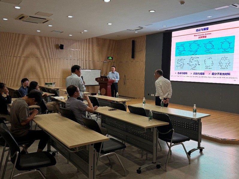 本次报告围绕“新型大环芳烃的分子识别与组装研究”为主题,报告十分精彩,现场座无虚席,会后教师和同学们就报告内容与陈传峰研究员展开了激烈讨论,学术氛围十分浓厚。