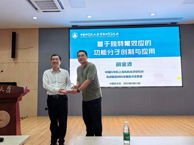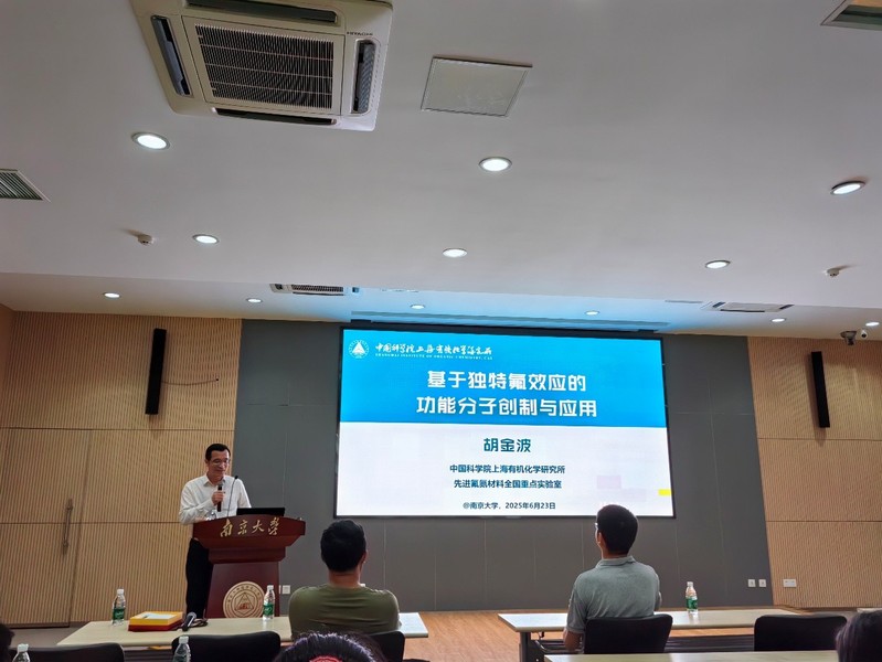 2025年6月23日下午,中国科公司上海有机化学研究所胡金波研究员应邀作为 “名师讲坛”嘉宾访问太阳集团tcy8722,并作题为“基于‘负氟效应’调控的氟试剂发现与功能分子创制”的精彩学术报告。报告由太阳集团tcy8722副经理史壮志教授主持,吸引了公司众多师生参加。史壮志教授介绍了胡金波研究员的简历和成就,并向其颁发了“名师讲坛”荣誉证书和纪念铭牌。
