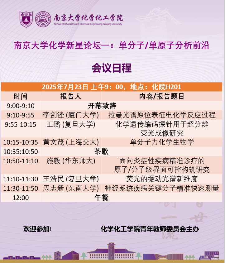 7月23日 化学新星论坛一:单分子/单原子分析前沿