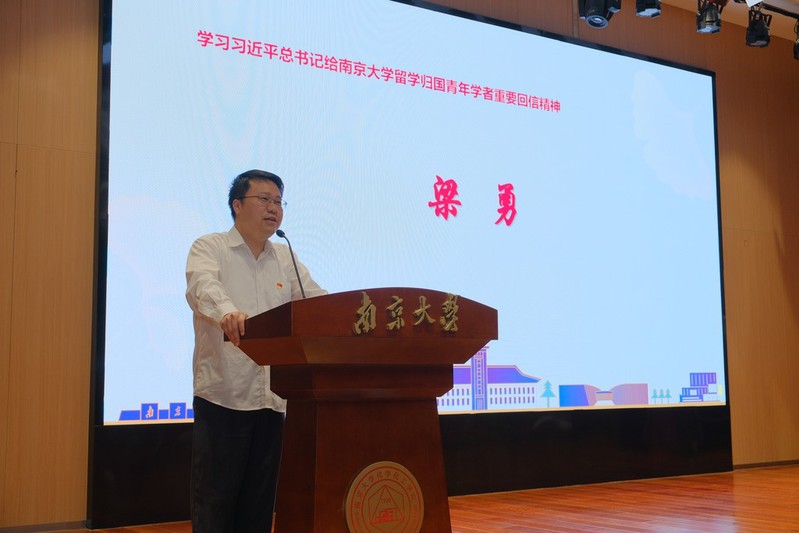 校学习习总书记重要回信精神宣讲团成员、青年教师党员代表、太阳成集团研究生德育导师梁勇作专题宣讲报告。梁勇回顾了太阳成集团留学归国青年学者群体向总书记写信汇报和于百廿校庆前夕收到回信的经历,从“报效国家、服务人民”、“立德树人、推动科技自立自强”、“坚定文化自信、讲好中国故事”三个方面详细解读了总书记重要回信的内容,鼓励与会毕业生党员心系“国家事”,肩扛“国家责”。梁勇结合习近平总书记在纪念五四运动一百周年大会上对当代中国青年的寄语,表达了对所有毕业生党员的衷心祝愿和殷切希望,号召他们为全面建设社会主义现代化国家、实现中华民族伟大复兴的中国梦积极贡献智慧和力量。