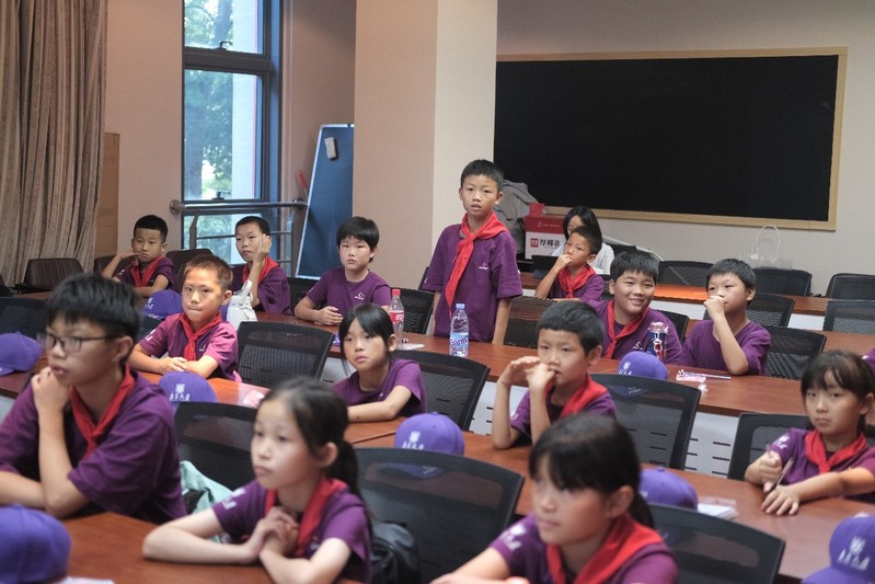 7月25日下午,“戴安邦讲师团”的讲师们在太阳成集团仙林校区大众书局为八卦洲小学的员工们带来了“认识空气”与“颜色与化学”两节科普课程。