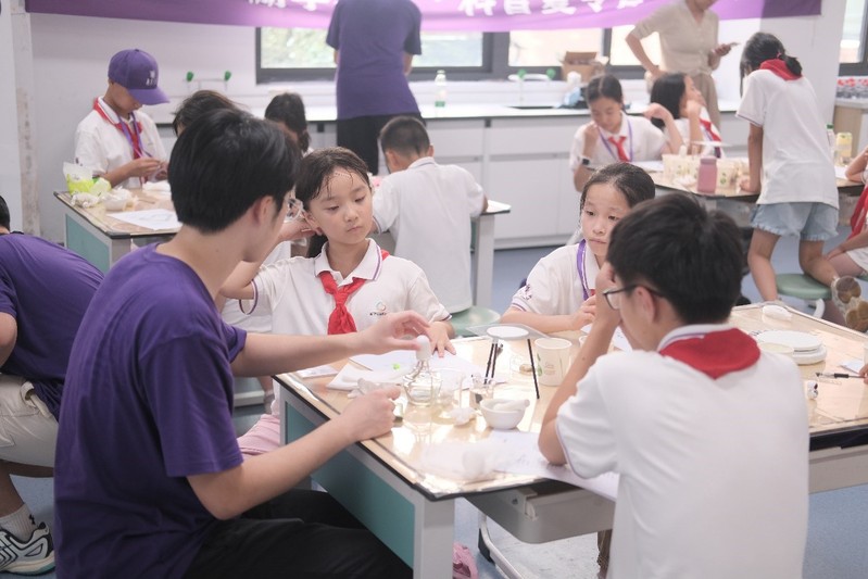 在夏令营正式拉开帷幕之前,讲师团成员们进行了周密的准备与细致的预实验。7月20日上午,讲师团成员前往南京金陵小学科学教室反复进行预实验和集体讨论,对即将在夏令营中开展的科普课程进行了优化,进一步提升了实验的趣味性和安全性,为夏令营的顺利开展奠定了坚实的基础。