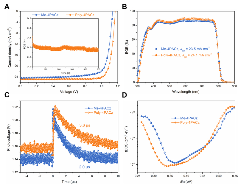 图2.基于Poly-4PACZ的钙钛矿太阳能的光电性能表征