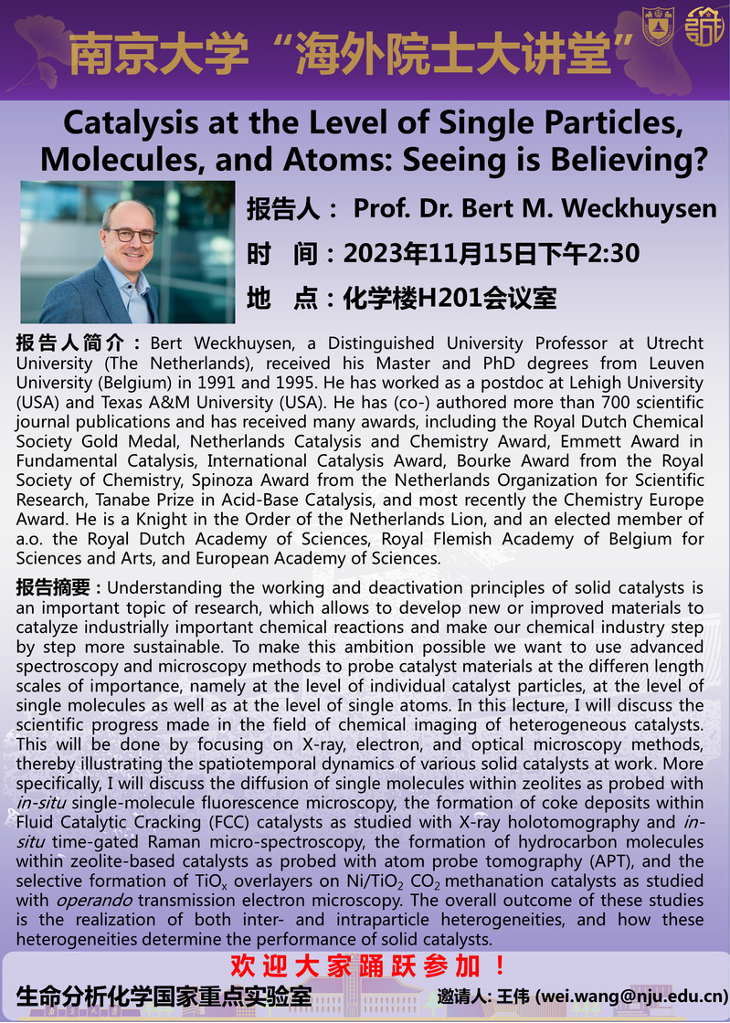 11月15日海外院士大讲堂-Prof. Dr. Bert M. Weckhuysen:Catalysis at the Level of Single Particles, Molecules, and Atoms: Seeing is Believing?