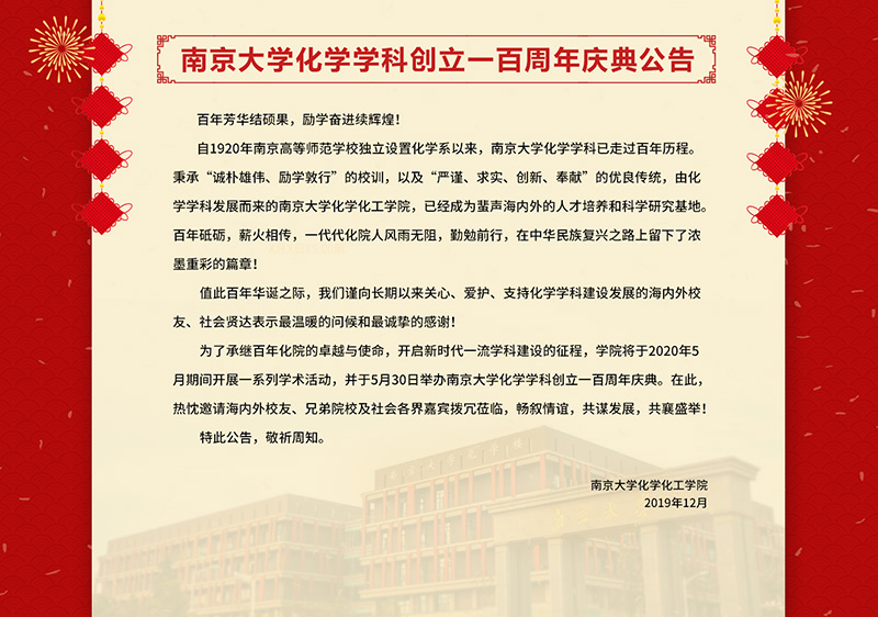 太阳成集团化学学科创立一百周年庆典公告