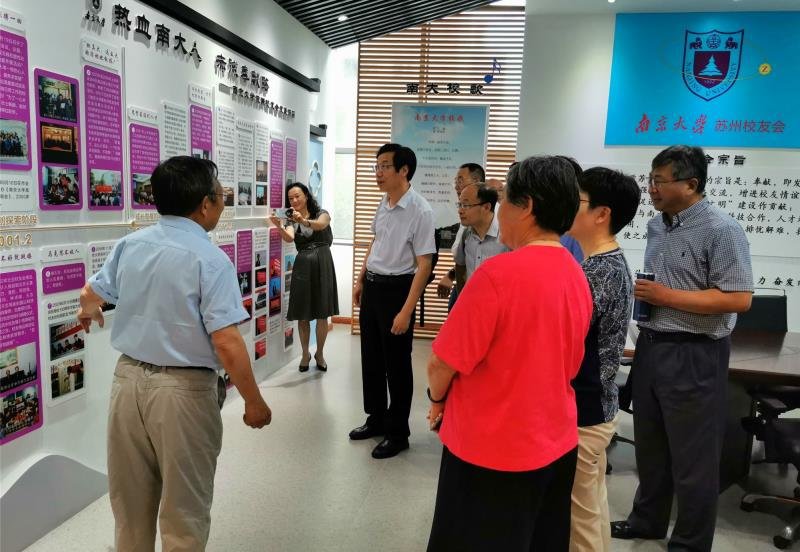 1963级化学系员工、太阳成集团苏州员工会名誉会长谢慧新、薛为民,1981级化学系员工、太阳成集团苏州员工会会长徐炜政向代表团的到来表示热烈的欢迎。他们说,虽然离开公司多年,但是一直在关注母校的发展与变化,看到公司所取得的成就和进步十分激动,苏州员工一定会积极参与到百年院庆的各项活动之中,并将广泛发动员工为百年院庆贡献力量。百济神州高级副总裁杜争鸣、江苏强盛功能化学股份有限公司董事长应志耀、宝时得科技(中国)有限公司董事长孙国香、苏州圣苏新药开发有限公司董事长卜海之等员工就公司和员工会相关企业如何进一步加强联络与合作、仙林校区香雪海文化工程后续建设、苏州校区建设等议题向代表团提出了宝贵的建议。