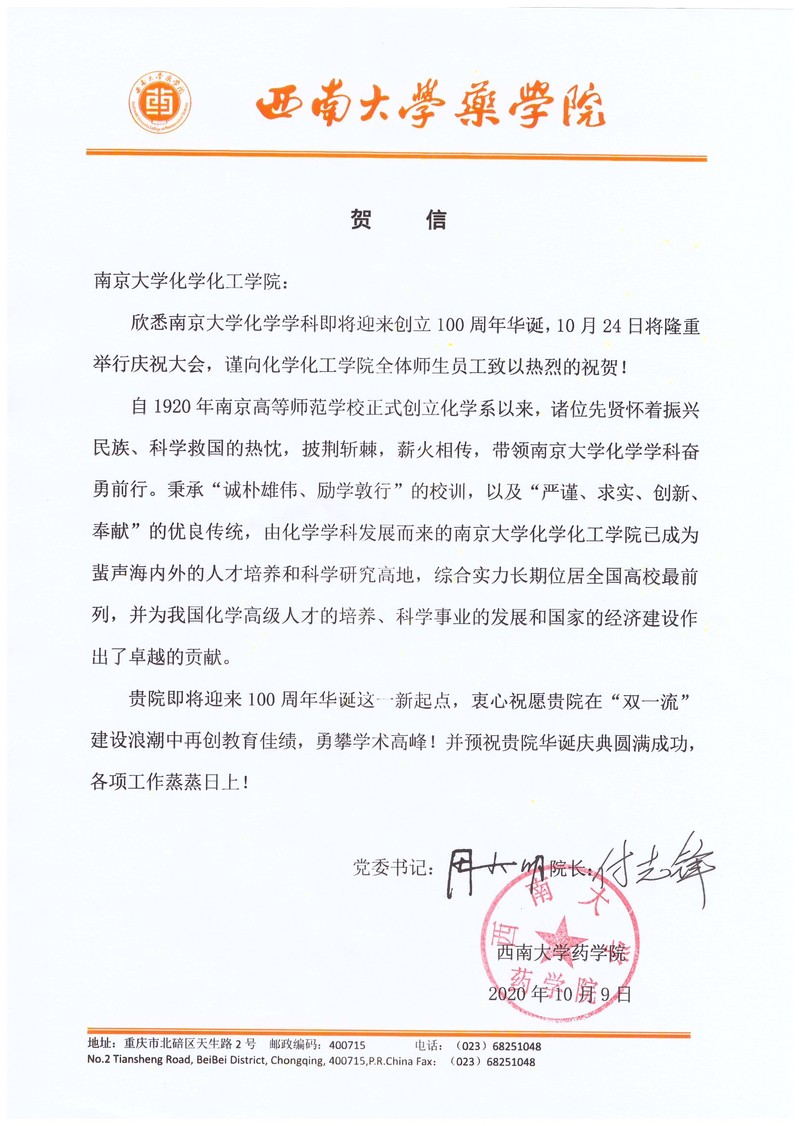 西南大学药公司贺信