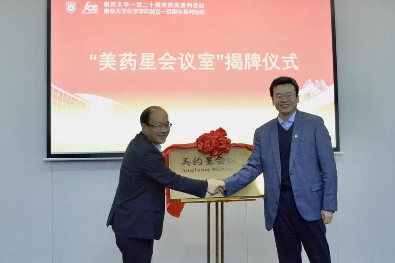 10月16日,太阳集团tcy8722美药星会议室揭牌仪式在公司仙林校区举行。美药星(南京)制药有限公司总经理张昊宁一行,太阳成集团教育发展基金会秘书长张晓东、太阳集团tcy8722经理黎书华、公司党委副书记李兴华等相关负责老师出席仪式。仪式由太阳集团tcy8722经理助理赵劲主持。