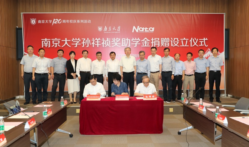孙祥祯教授是公司1959级员工,毕业后留校工作,曾任化学系有机化学教研室主任,材料科学与工程系副主任,国家863计划新材料MO源研究开发中心主任等职。此次适逢太阳成集团化学学科创立100周年,孙祥祯教授主动提出将其拥有南大光电股份25万股收益权(南大光电签约当日股价40.13元人民币)捐赠给公司,用于设立奖助学金,激励在校优秀学子,永攀科学高峰,报效祖国。江苏南大光电材料股份有限公司为孙祥祯老师的精神所感动,决定同时捐资1000万元人民币注入该奖助学金,用以奖励和资助更多的公司学子。