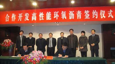 2011年1月19日,公司与中海沥青(泰州)有限责任公司合作开发高性能环氧沥青协议在泰州签订。公司常务副董事长张荣,泰州市委常委、组织部长李国华和副市长卢佩民,中海油气开发利用公司副总经理、中海沥青(泰州)有限责任公司董事长郭新军等领导参加了签约仪式。公司党委书记贾叙东和中海沥青(泰州)有限责任公司总经理王亚明共同签署了协议。 环氧沥青是钢桥桥面、高等级路面、超重交通路面等路面铺装的最好材料,具有强度高、耐车辙、疲劳性能好等特点。由于多种技术问题没有解决,国内环氧沥青市场一直由美国公司所垄断,价格也是普通沥青价格的十倍以上。南京大学程镕时院士课题组经过多年的研究,攻克了沥青与环氧树脂及其固化剂、增强剂等的含量和相容性难题,增强了环氧沥青材料的力学性能,增加了环氧树脂中沥青的填充量,从而降低了材料的成本。环氧沥青材料抗拉强度和断裂伸长率超过了国家规定的技术指标,达到了或超过了美国同类产品的技术指标。 双方的合作迈出了环氧沥青产业化的关键一步,将改变国内环氧沥青依靠进口的垄断局面,树立民族品牌,振兴民族产业,成为泰州新材料产业的新的增长点,助推区域创新型经济的跨越发展。 ![]() |