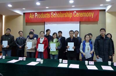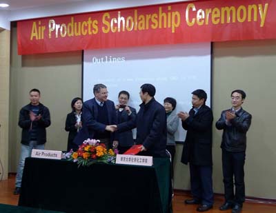 2010年3月9日下午,太阳集团tcy87222011年“Air Products”奖学金在费彝民楼B104报告厅举行。 颁奖仪式前,朱成建副经理代表公司与空气化工产品(中国)投资有限公司首席技术官Monty Alger先生续签了“Air Products”奖学金捐赠协议。 ![]() 李育佳副经理宣读了《太阳集团tcy8722关于授予鲁艺等7名同学2011年“Air Products”奖学金的决定》。 ![]() 空气化工产品(中国)投资有限公司首席技术官Monty Alger先生、亚洲国际技术合作部总监高小平先生、中国技术中心总监缪平先生、人力资源部招聘专员郑蓉女士以及太阳集团tcy8722朱成建副经理、李育佳副经理以及公司党委纪勇副书记共同为获奖同学颁奖。 ![]() 2008级本科生路景致同学代表获奖同学发言,感谢空气产品公司支持教育事业、积极回报社会的精神。 ![]() 随后,缪平先生以及Monty Alger先生先后发言,介绍了空气产品(中国)投资有限公司基本情况和公司价值理念。公司党委纪勇副书记在讲话中也再次对空气产品(中国)投资有限公司表示感谢,并勉励获奖同学再接再厉,取得更大的成绩。 ![]() ![]() ![]() 空气化工产品公司于2007年开始在公司设立“Air Products”奖学金,用于奖励成绩优秀的全日制本科生以及具有创新能力、科研成果突出的全日制博士研究生,目前已有12名本科生、8名硕士研究生和8名博士研究生获得“Air Products”奖学金。 |