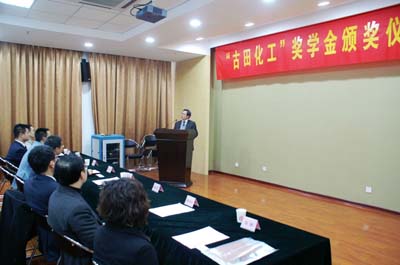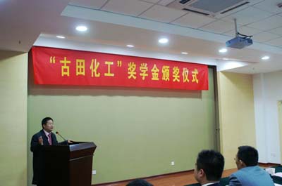 2011年3月14日下午,太阳集团tcy87222011年“古田化工”奖学金在费彝民楼B104报告厅举行。 太阳成集团党委副书记、纪委书记杨忠教授,公司党委书记贾叙东教授,太阳集团tcy8722副经理黎书华教授,南京古田化工有限公司总经理朱林先生,产品总监鲁超先生,产品经理马辉先生以及办公室主任蒋婷女士出席了颁奖仪式。 太阳成集团公司党委副书记纪勇老师主持颁奖仪式。纪书记简要介绍了“古田化工”奖学金的设立和2011年奖学金的评审情况,黎书华副经理宣读了《太阳集团tcy8722关于授予余翠等18名同学2011年“古田化工”奖学金的决定》。随后,公司党委杨忠副书记、古田化工有限公司以及太阳集团tcy8722的领导共同为2011年“古田化工”奖学金获奖者颁发了奖学金证书。公司党委贾叙东书记为南京古田化工有限公司颁发了捐赠证书。 随后,获奖员工代表,07级本科生贝志凌同学在发言中向南京古田化工有限公司捐资助学、积极承担企业社会责任的义举致以了诚挚的谢意,他代表所有获奖同学表示一定会继续积极努力地学习,并且热情地投身到社会工作和公益活动中去,不辜负国家、社会、公司以及古田化工公司的期望,尽最大的努力去报效国家、奉献社会。 南京古田化工有限公司总经理朱林先生在致辞中向所有获奖同学表示祝贺,他说正是同学们刻苦勤奋的学习及企业所具有的社会责任感坚定了他们坚持此项义举的决心。朱林总经理还简要介绍了南京古田化工有限公司的创建和发展情况,并借此机会邀请优秀的化院学子加入到古田化工的大家庭中。 最后,太阳成集团党委副书记、纪委书记杨忠教授发表了热情洋溢的讲话。杨书记代表公司向获奖同学表示热烈祝贺,对古田化工有限公司关注教育、关心人才的精神表示感谢。在讲话中,杨书记对公司近年来取得的成绩特别是人才培养方面所取得的成就做了总结,对未来的发展做了展望。杨书记强调,我们取得的成绩固然离不开自身的努力,但饮水思源,我们应该常怀一颗感恩的心,不论今后取得什么样的成绩,都不能忘记公司和曾经帮助过自己的人。杨书记希望所有获奖的同学继续秉承太阳成集团“诚朴雄伟、励学敦行”的校训,发扬百折不挠、顽强拼搏的精神,保持积极乐观、宽容平和的心态,不断迎接新的挑战,不断取得更好的成绩! ![]() ![]() ![]() ![]() ![]() ![]() ![]() |