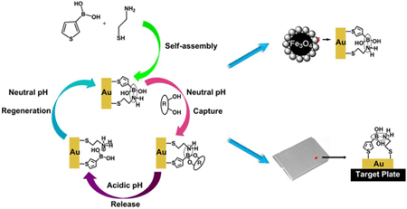 ![]() 取代硼酸功能化材料是蛋白质组学、代谢组学和糖组学等领域中重要的分子识别和富集介质。但是,通常的硼亲和功能化材料只能在碱性条件下起识别作用,不能直接应用于生理pH条件。刘震教授研究组在其提出的“协同共单体开环聚合法”(Angew. Chem. Int. Ed., 2009, 48, 6704-6707)的基础上提出了统一的“团队硼亲和”原理以及制备团队硼亲和材料的新方法“分子自组装法”,利用普通取代硼酸与氨基化合物间的协同作用组成“分子团队”替代常规的单一取代硼酸,通过一步反应即可制得能在中性pH条件工作的硼亲和功能化材料,实现了对糖蛋白等分子的高选择性、高亲和力富集。该工作发表于最近的Chem. Commun., 2011, 47, 2255 - 2257. |