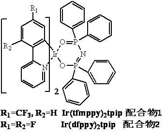 自从Forrest课题组将Ir(ppy)3应用到OLEDs中以来,由于其较高的发光性能和稳定性,铱配合物成为OLEDs领域研究最多的发光材料。在Ir配合物中辅助配体(LX)可以通过它的配位场强度和电子效应对中心金属Ir(III)作用,从而调节Ir(C∧N)2LX的光学性质,但是选择能够提高配合物光电性能的辅助配体是困难的。郑佑轩课题组以二(二苯基磷酰胺)Htpip作为辅助配体,合成了配合物Ir(tfmppy)2tpip (1)和Ir(dfppy)2tpip (2),并以它们为发光中心的电致发光器件:ITO/TAPC(40 nm)/Ir(tfmppy)2tpip or Ir(dfppy)2tpip (x wt%): mCP(20 nm)/TPBi(40 nm)/LiF(1 nm)/Al(100 nm)。