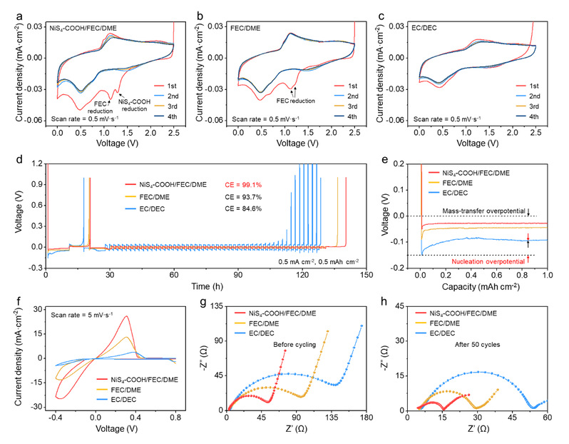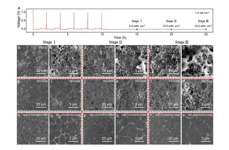 1. NiS4-COOH添加剂诱导均匀锂沉积,改善锂沉积/剥离可逆性