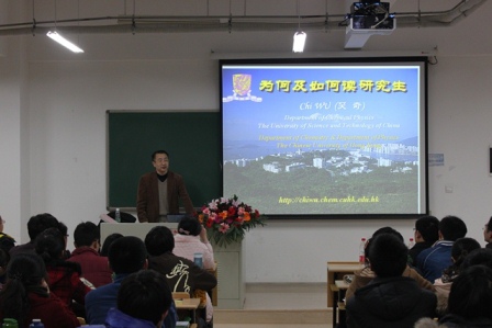 3月1日晚,中科院院士、香港中文大学吴奇教授应邀来公司讲学,为公司师生带来一场思想盛宴。讲座在公司仙林校区逸B212教室举行,参加讲座的有公司党委纪勇副书记,匡亚明公司葛欣副经理、乔蔚虹副经理,以及来自化院、匡院等各院系的二百多位同学,离讲座开场还有半个小时现场就早已济济一堂,一座难求。