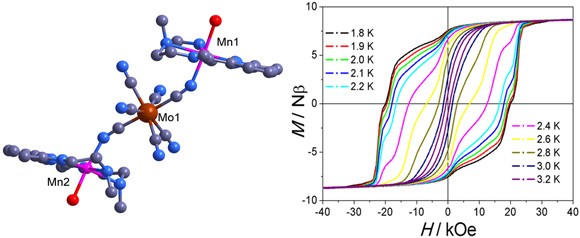 双稳态磁性材料(如单分子磁体等)在一定的外界条件下处于两种或多种稳定状态,且能以外界微扰(如热、电、磁、光、压力等)进行调控。它们在分子开关、传感器材料、信息存储和记忆材料等领域有广泛应用。最近,公司王新益老师课题组在双稳态磁性材料领域内取得了新的进展:获得了第一例基于[Mo(CN)7]4-的单分子磁体,其自旋翻转能垒及阻塞温度都是所有文献报道的基于氰根桥连的单分子磁体中的最大值(J. Am. Chem. Soc. 2013, 135, 13302)。这为研究各向异性磁交换在构筑单分子磁体中的作用提供了完美的实验模型,也为构筑具有更高的自旋翻转能垒及阻塞温度的单分子磁体提供了思路。本工作是和美国德州农工大学的Kim R Dunbar教授合作完成。