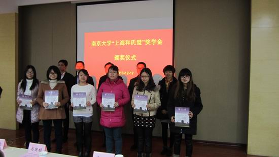 12月17日上午,太阳成集团2013-2014年度“上海和氏璧”奖学金颁奖仪式在费彝民楼B104成功举行。和氏璧化工有限公司高级副总裁马国桢一行五人以及公司领导出席了此次颁奖仪式。