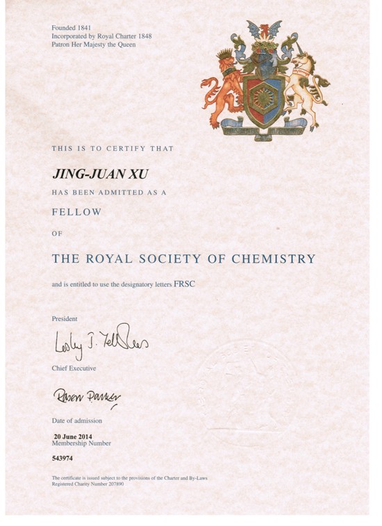 日前,太阳集团tcy8722分析化学学科、生命分析化学国家重点实验室徐静娟教授当选为英国皇家化学学会会士(Fellow of the Royal Society of Chemistry, FRSC)。 徐静娟教授于2000年获太阳成集团博士学位后,留校任教。2007年入选教育部“新世纪优秀人才支持计划”,2007-2008年度为美国Cornell University访问教授,2010年获得国家杰出青年科学基金,2013年获第十届中国青年女科学家奖。她曾分别获得国家自然科学奖二等奖1项(2007,排名第二)、教育部自然科学奖一等奖2项(2006,排名第二;2001,排名第五)。她在其主要研究方向光电化学、电致化学发光生物分析方面卓有建树,在基础和方法学上提出了多种基于能量转移的传感新机制,建立了双极电极电致化学发光生化分析新方法, 拓展了这一新兴领域在生命分析化学中的应用。迄今她已在Chem.Rev., Chem. Soc. Rev., Chem. Sci., Anal. Chem., Chem. Commun.等刊物上发表论文250余篇,他引6900余次,H-index为49。目前,她正聚焦于生命分析化学的学科前沿,开展单细胞分子动态成像方面的研究工作,并取得重要进展。