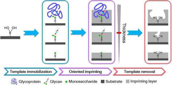 ![]() 图1. 硼亲和可控定向表面印迹原理