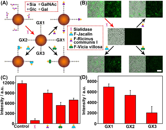 ![]() 图2. 细胞表面神经节苷脂亚型的鉴定原理(A)和分析结果(B-D)