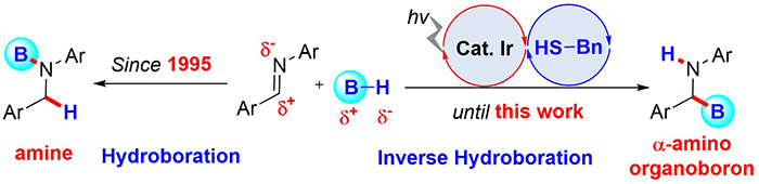 ![]() 亚胺的硼氢化反应是有机合成实验室中最常用制备胺的手段之一。由于高度极化的硼氢键,使得硼烷中的氢原子总是优先加成到亚胺的碳端。a-氨基硼类化合物是一类非常重要的合成中间体,而传统的合成策略却难以实现复杂分子的后期修饰。公司分子与材料合成研究团队成员经过仔细分析,首次提出了亚胺的极反转硼氢化新概念。通过可见光与硫醇有机小分子的协同催化,在温和条件下从NHC-BH3直接产生硼烷自由基,巧妙实现亚胺的反区域选择性硼氢化。为了最大限度抑制竞争的硼氢化进程,结合理论计算筛选出苄基硫醇为最优有机催化剂。重要的是,该合成技术可以成功应用到复杂生物分子的后期硼修饰中,弥补以往策略的局限性。该项工作为a-氨基硼类化合物的简便构建提供了一种全新的思路,得到审稿人的高度好评,其中一位匿名评审人评价到“This is a great addition to the arsenal of reactions that NHC-boryl radicals can achieve.”