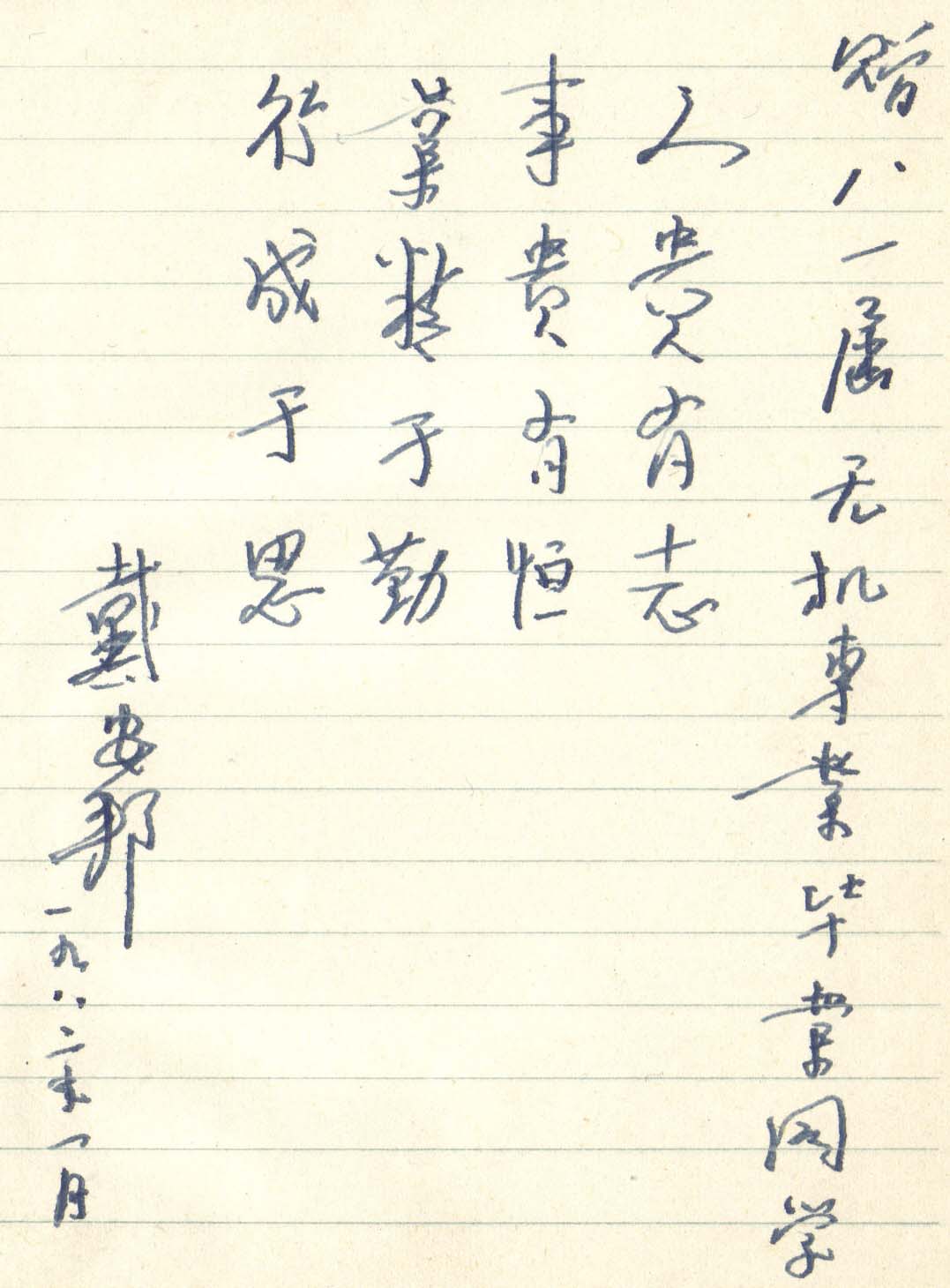 戴安邦先生为81届无机班题词