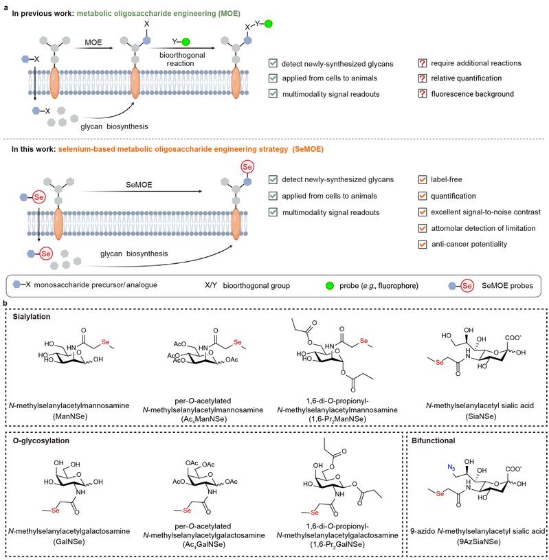 图1. SeMOE示意图(a)及新型硒代非天然糖(b)