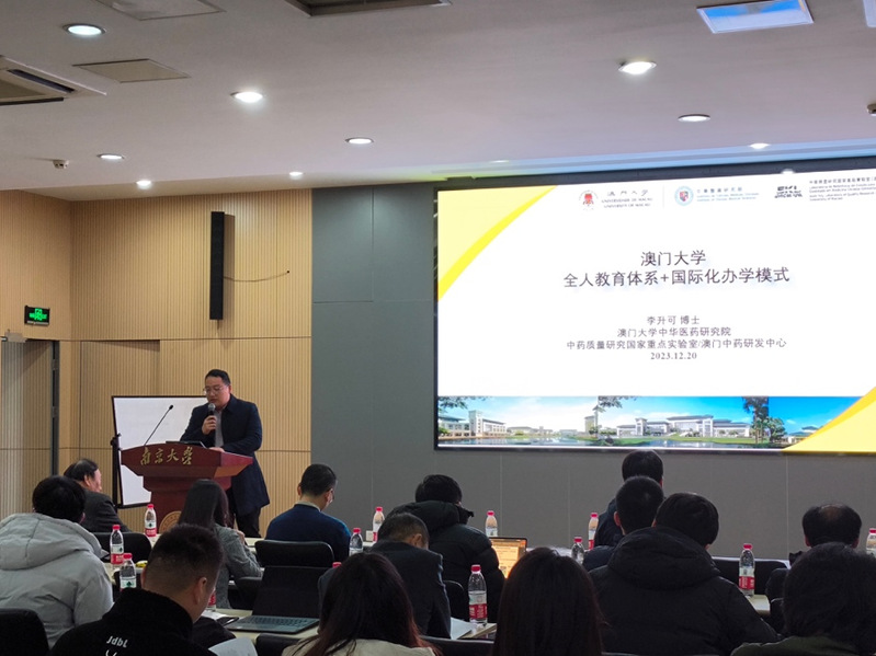 随后,来自澳门大学的中华医药研究院李升可博士以“澳门大学:全人教育体系+国际化办学模式”为题,为在场的师生们介绍澳门大学建校历史与国际影响力发展,特别就澳门书院式教育进行了介绍,得到了在场师生的认可与赞扬。