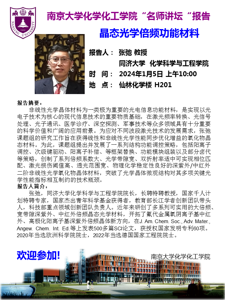 1月5日名师讲坛-张弛教授:晶态光学倍频功能材料