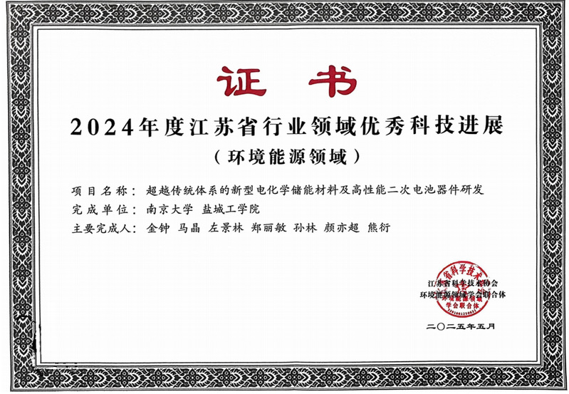 图1.该项目团队获得2024年度江苏省行业领域优秀科技进展证书。