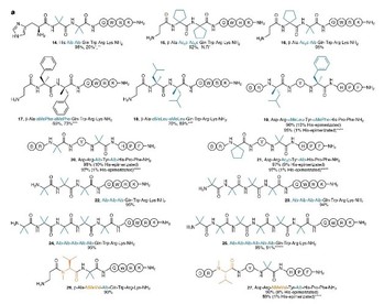 图2:含N-甲基和α,α-双取代大位阻氨基酸的多肽底物拓展