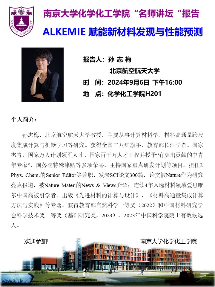 9月6日名师讲坛-孙志梅教授:ALKEMIE 赋能新材料发现与性能预测