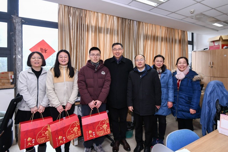首先,王振林一行参观了化学楼实验室门前张贴的师生手写各式趣味春联,并到实验室看望假期留校研究生,与同学们亲切交谈并赠送新年礼包,嘱托大家注意实验安全,过一个平安祥和、快乐充实的新年。然后,王振林参加了公司举办的留校员工座谈会,座谈会上暖意融融,大家在欢笑畅谈中寄托着新一年的美好愿景,同学们纷纷表示要利用寒假时间多多积累,在科研上做出新突破。王振林充分肯定了同学们在假期里仍然投身科研的奋斗精神,鼓励大家勇担时代使命,积极开拓创新,祝愿同学们在新的一年里科研顺利,再创佳绩。同时,希望同学们也要注意劳逸结合,常和家人联系,为亲朋好友带去新春的问候。