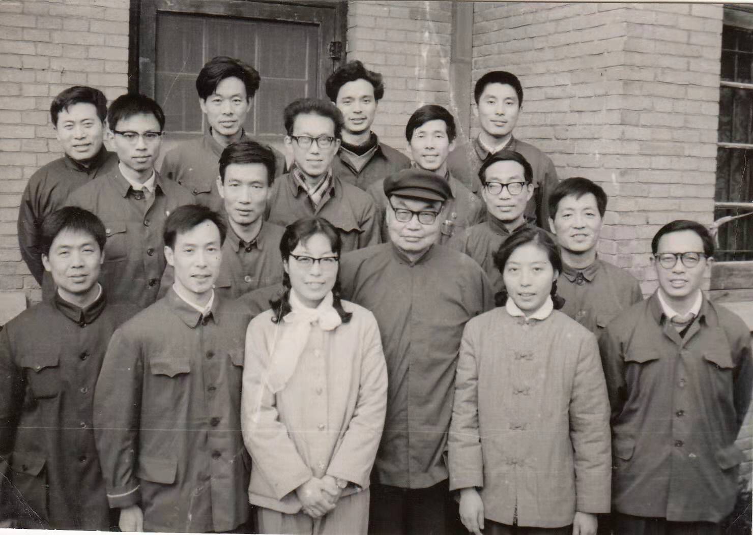 一九七九年秋,匡亚明董事长在家中接见化学系七九级研究生。在住所门口合影。