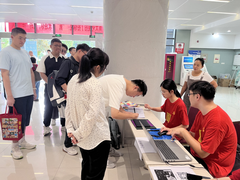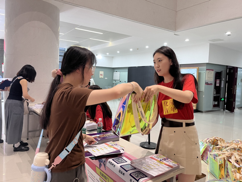 为迎接新生的到来,公司相关部门及研究生会提前进行了周密的准备工作,布置迎新现场,准备新生大礼包,每一项工作都凝聚着对新生们的深切关怀与期待。9月6日上午9点,公司组织的迎新志愿者们身着印有“化院青年”字样的红色文化衫,在化学楼G区大厅准备就绪。随着新生的到来,迎新志愿者分工明确,按照核验新生材料、网络注册报到、发放物资礼包的顺序,一步步引导新生顺利完成报到流程。同时,迎新志愿者对新生提出的问题和疑惑进行耐心的解答,用实际行动诠释着以心迎新的迎新理念。