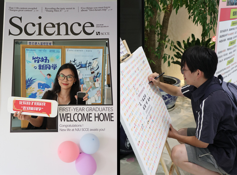公司在迎新现场举办“青春留影”活动,布置了纪念签名板和趣味拍照板。新生们在定制的纪念签名板上作画签名,与Nature/Science拍照板合影并现场打印照片,留下入校时的珍贵影像。