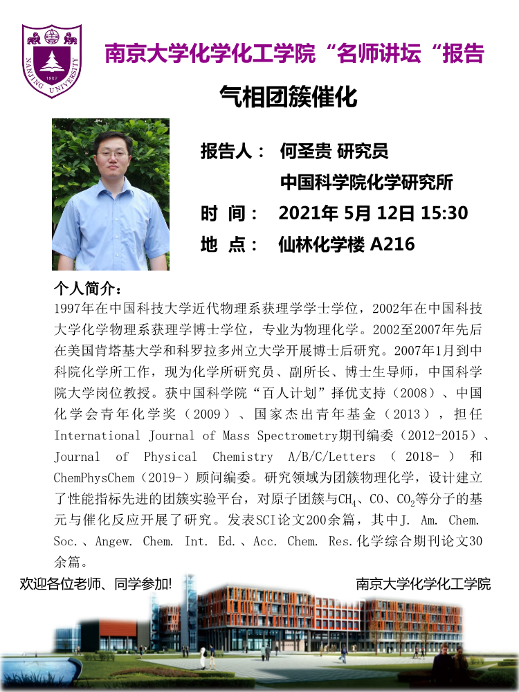 5月12日名师讲坛-何圣贵研究员:气相团簇催化